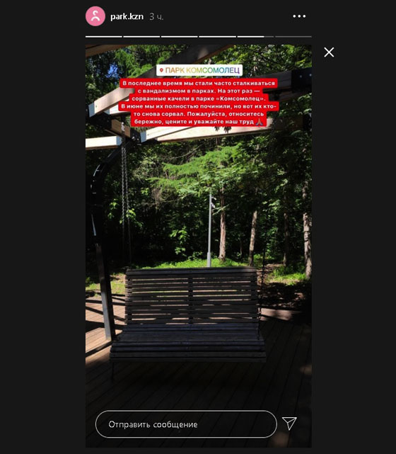 В Казани на территории парка «Комсомолец» снова сорвали качели. Все случилось в ночь с 17 на 18 июня. Это уже второй случай за месяц, сообщили в Дирекции парков и скверов. Там казанцев призвали бережно относиться к объектам в общественных местах.