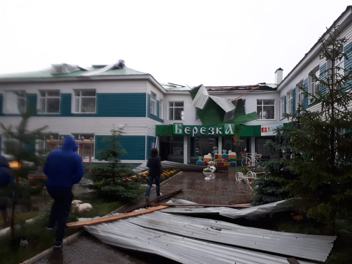 В Кукморе на улице Вахитова сильный ветер сорвал кровлю детского сада. Прибывшие на место происшествия спасатели установили, что сильный ветер повредил 280 квадратных метров кровли детсада «Березка». Погибших и пострадавших нет.