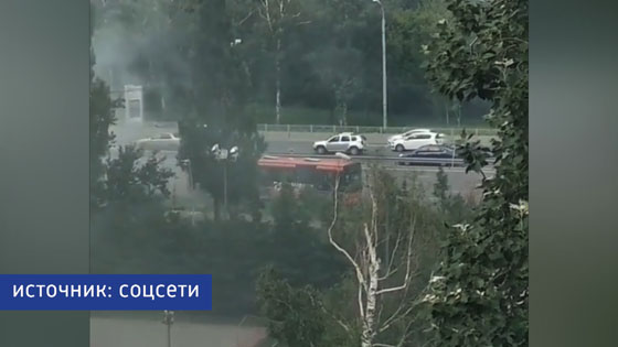 На кадрах видно, как у края проезжей части стоит автобус, из которой валит густой дым. Судя по видео, инцидент произошел возле остановки «Энергетический университет».