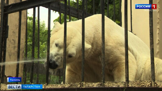 Освежающая подача ледяной воды для Якута сейчас — это то, что надо. Так зовут белого медведя – любимца посетителей казанского зооботсада. Погода стоит жаркая, поэтому приходится охлаждаться. В том числе и мороженым.