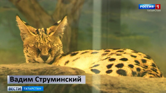 Вот уже неделю на столбиках термометров — плюс 30 и выше. Но животные этого не замечают. Ведь у них есть система охлаждения вольеров. Хищник семейства кошачьих — африканский сервал — очень любит отдыхать не только на возвышенностях — но и на полу. В том числе потому, что здесь проводят ночную проливку. Помещение обдают водой, чтобы животным было комфортно в жаркую погоду.