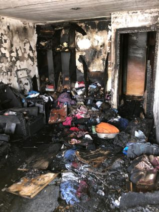 В соседней квартире №116 в результате пожара сгорели вещи, мебель, оконная рама на площади 15 квадратных метров, в прихожей огонь на площади 2 квадратных метров также уничтожил вещи и мебель. Общая площадь пожара составила 17 квадратных метром.