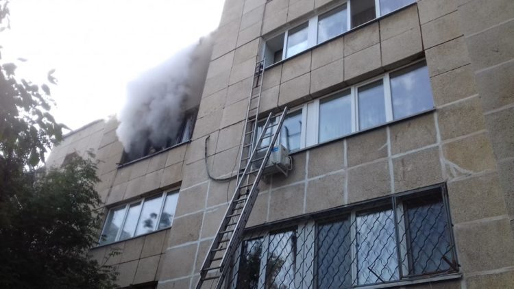 В 14:36 огнеборцы приступили к тушению пожара со стороны подъезда, однако из-за большого количества припаркованных машин во дворе установить пожарную автолестницу в окно 4-го этажа было невозможно, поэтому пожарные решили использовать ручные лестницы.