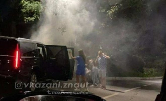 Минувшей ночью в центре Казани произошло ДТП с автомобилем Cadillac Escalade. Как рассказали пользователи соцсетей, в машине находились молодые люди.
