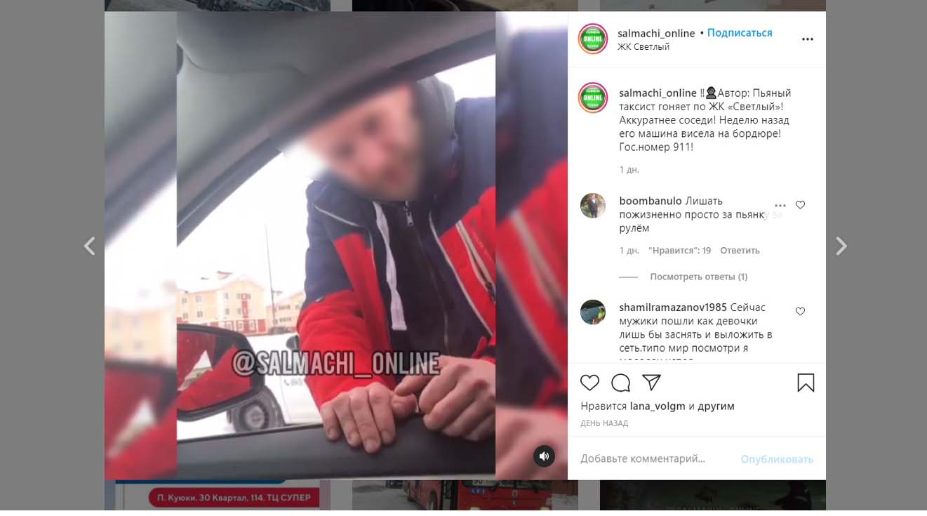 Сообщается, что все случилось 26 декабря в жилом комплексе «Светлый». По словам автора видео, пьяный водитель такси ездил по территории ЖК. На видео оператор обращается к нарушителю и спрашивает его, зачем тот водит пьяным.