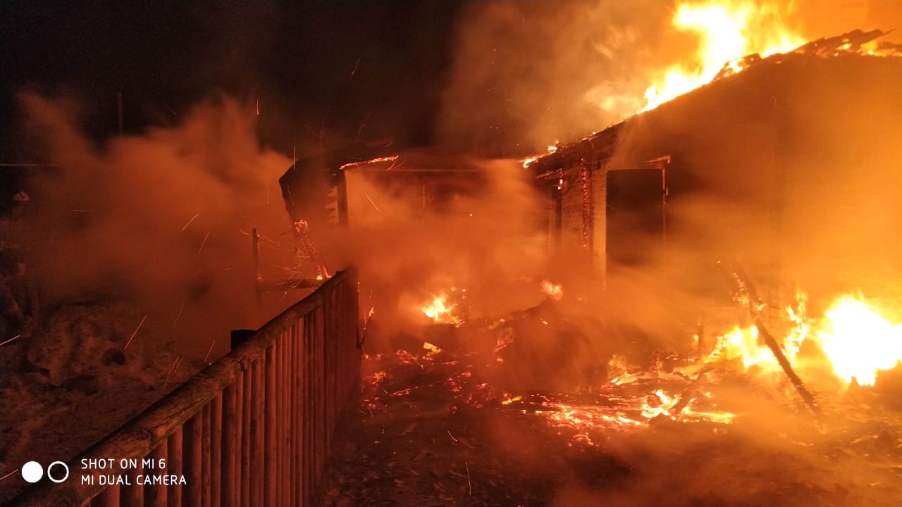 Прибывшие на место вызова пожарные увидели объятый пламенем дом площадью сто квадратных метров. В 20:56 они потушили огонь. Спустя две минуты среди завалов пожарные нашли тело мужчины. Личность погибшего устанавливается.