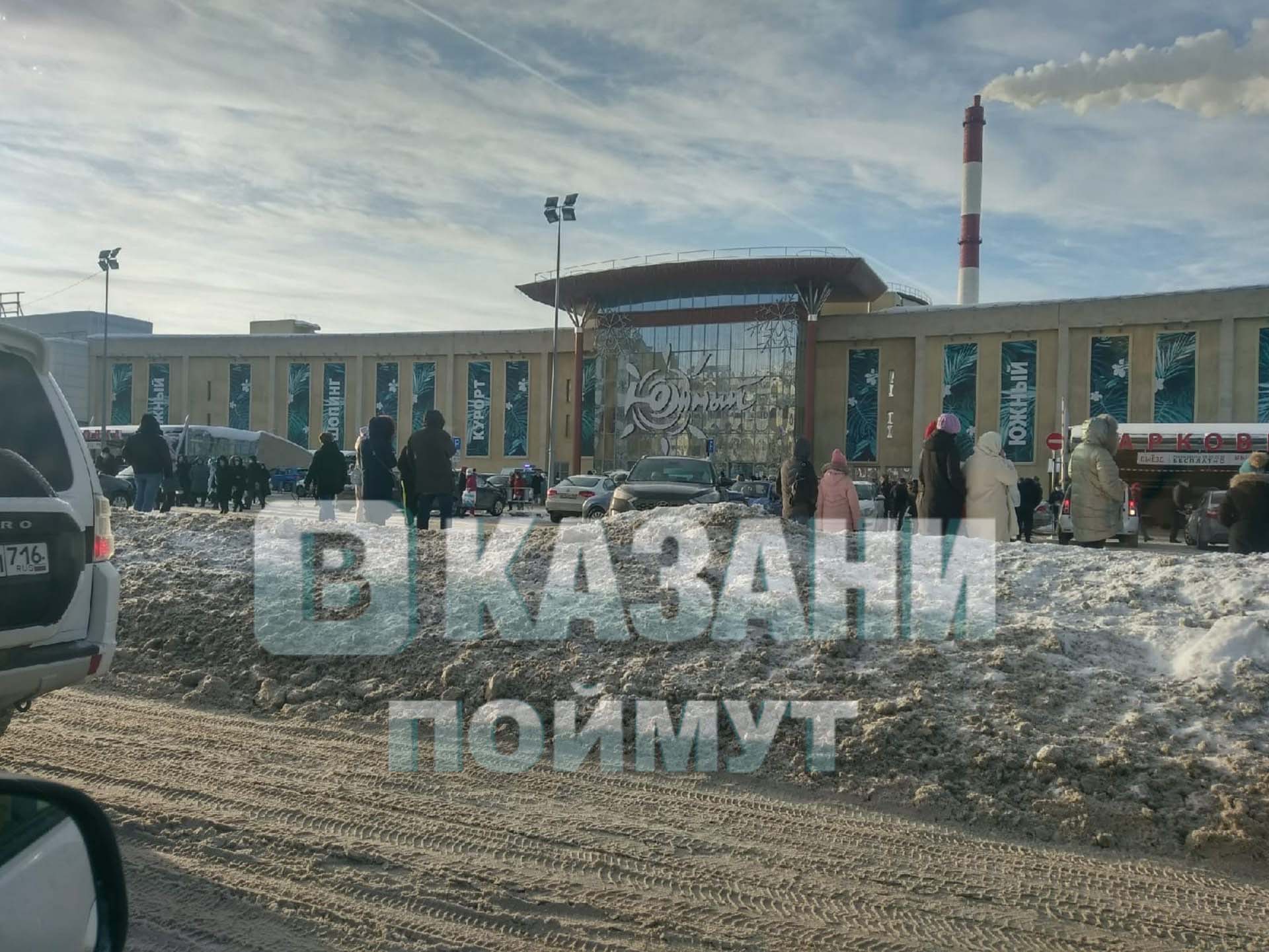 Сегодня в Казани прошла эвакуация из ТЦ «Южный». Фото и видео с места событий появились в соцсетях. Из здания комплекса вышло много людей, они стояли на улице. К объекту прибыли машины экстренных служб.