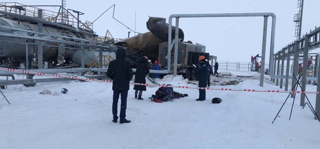 Разрыв ёмкости установки предварительного спуска воды на площадке ООО «МНКТ» привел к двум жертвам и трем раненым.