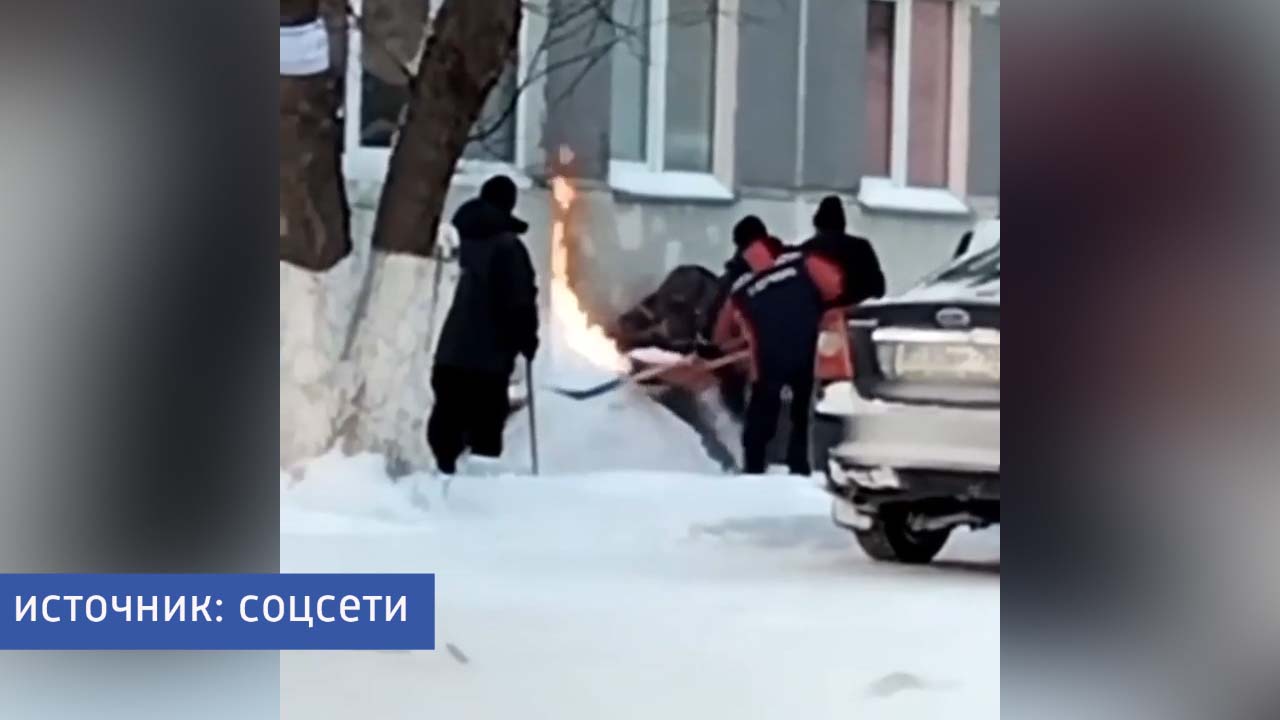 Этот случай запечатлели на камеру. В социальных сетях распространились фото и видео, на которых работники газовой службы тушили пожар снегом.