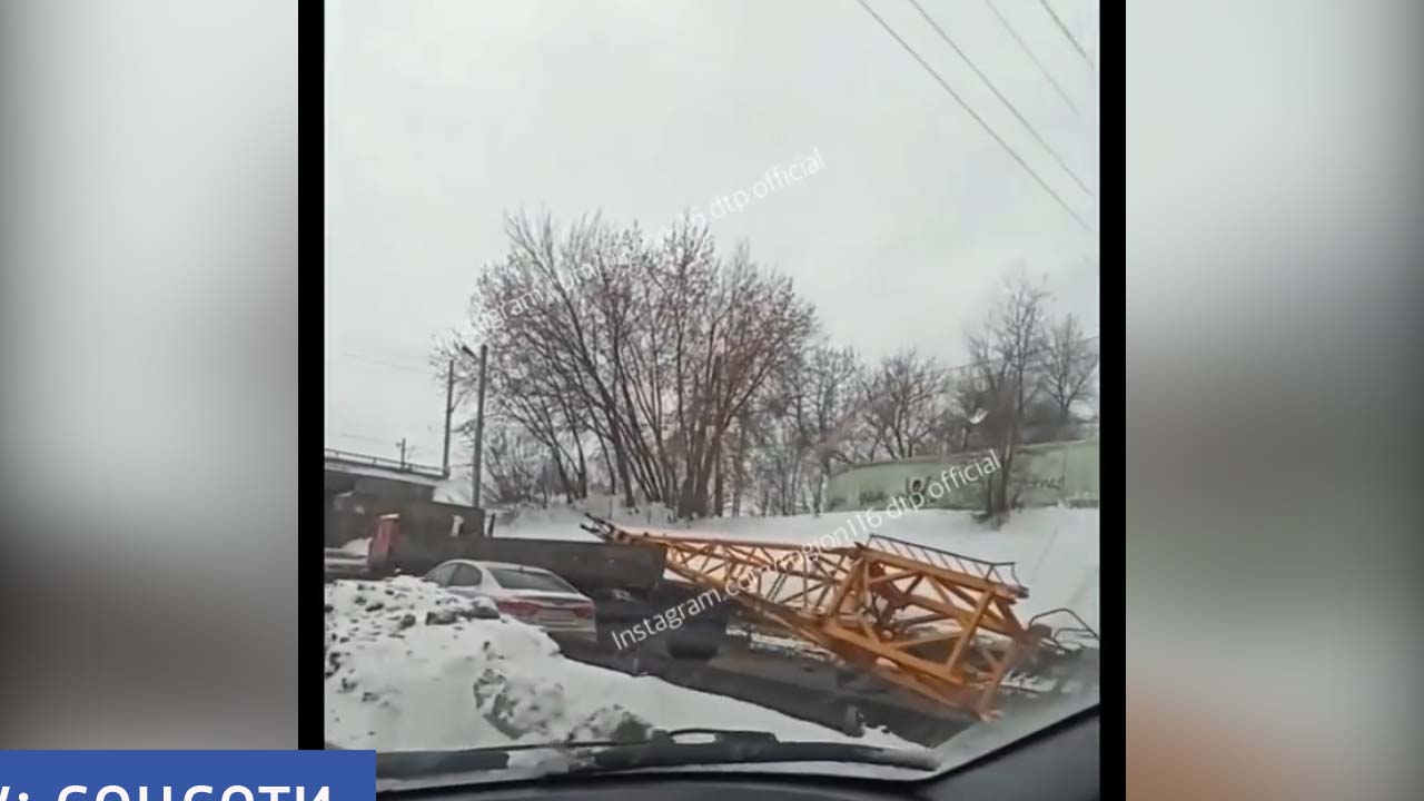 В Казани на ул. Воровского прямо на дорогу рухнул строительный кран. Видео с места происшествия выложили в соцсетях.