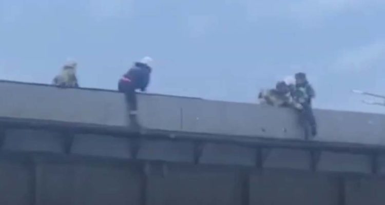 Когда парень решился сделать прыжок с моста, его схватили за руки и ноги полицейские и спасатели. Они вытянули его на мост. Как выяснилось, молодой человек был пьян.