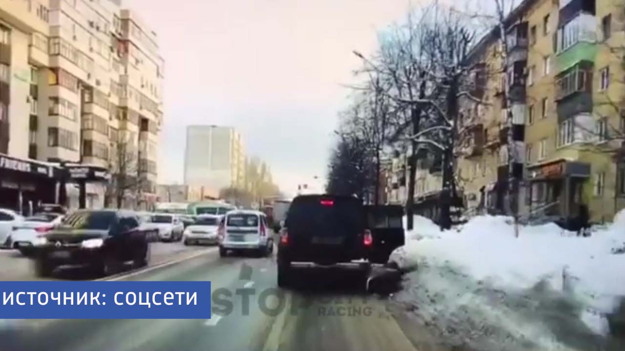 На улице Космонавтов в Казани на ходу из джипа выбросили девушку. Инцидент попал на камеру видеорегистратора.