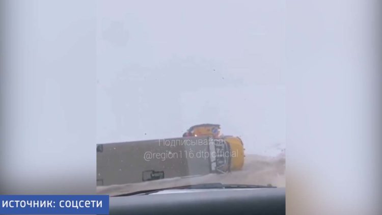 В МВД по Татарстану сообщили, что водитель грузовика International не справился с управлением на скользкой дороге, после чего машина опрокинулась. Шофер не пострадал, у самой машины лишь механические повреждения.