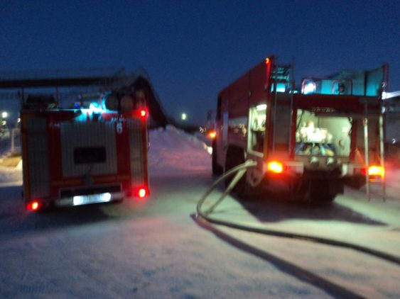 Внутри горящего здания никого не было, здание было заперто снаружи. Огонь охватил 75 квадратных метров — горели запасы краски, резина и деревянные изделия.