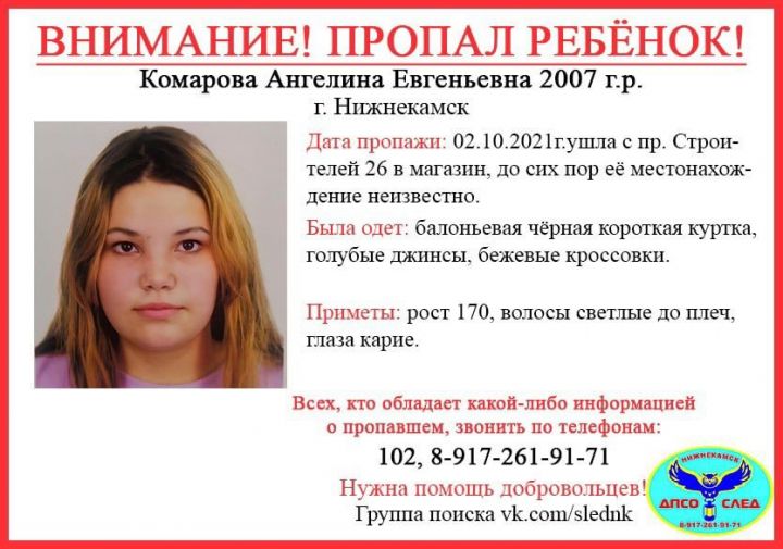 Как стало известно, девочка пропала в субботу 2 октября. Школьница вышла из дома проспекте Строителей в магазин и больше не возвращалась.