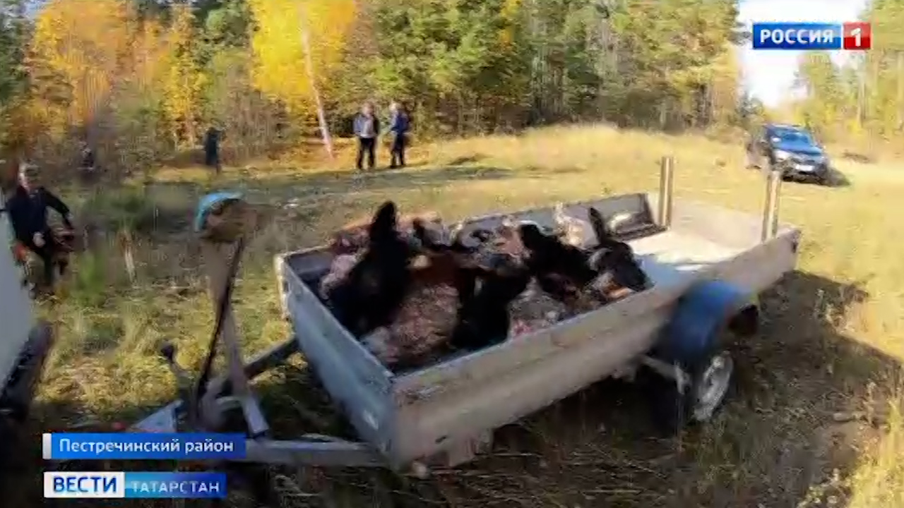 На шокирующую находку наткнулись жители села Богородское в Пестречинском районе. В окрестностях они обнаружили свалку голов. Кто-то складировал части туш в посадке. Обнаружили по зловонию. На место выехал Булат Шакиев.