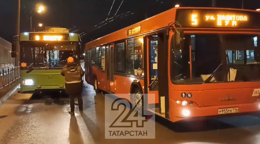В Казани ночью произошла двойная авария с участием автобуса. Об этом сообщает «Татарстан 24».