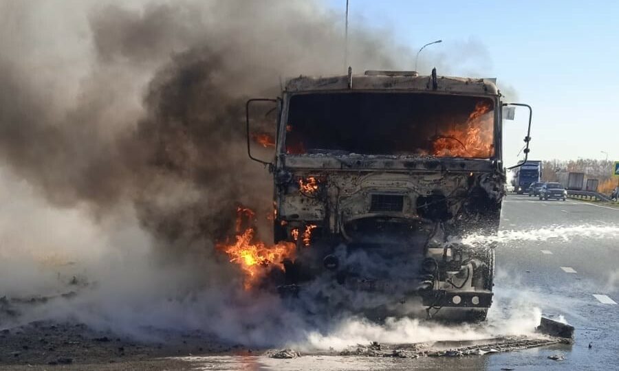 Спустя несколько минут пожарным удалось потушить огонь. В результате кабина грузовика сгорела полностью.
