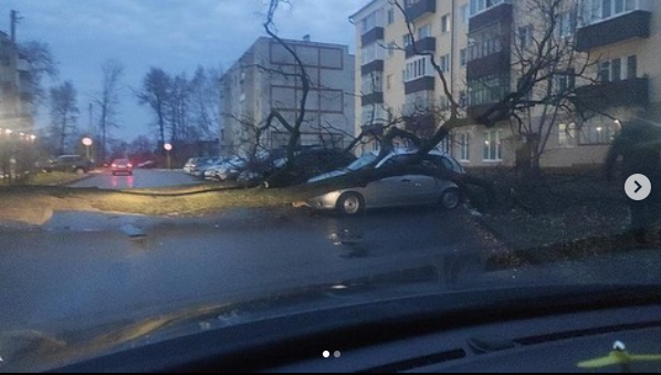 Сильный ветер на территории Зеленодольска повалил дерево на машину. Фотографии, на которых это запечатлено, опубликовали пользователи в социальных сетях.