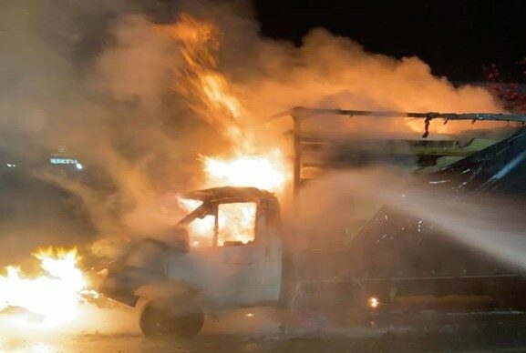 Инцидент произошел около полуночи. С слов очевидцев, автомобиль вспыхнул на ходу. Водитель успел выбраться из горящей кабины и не пострадал.