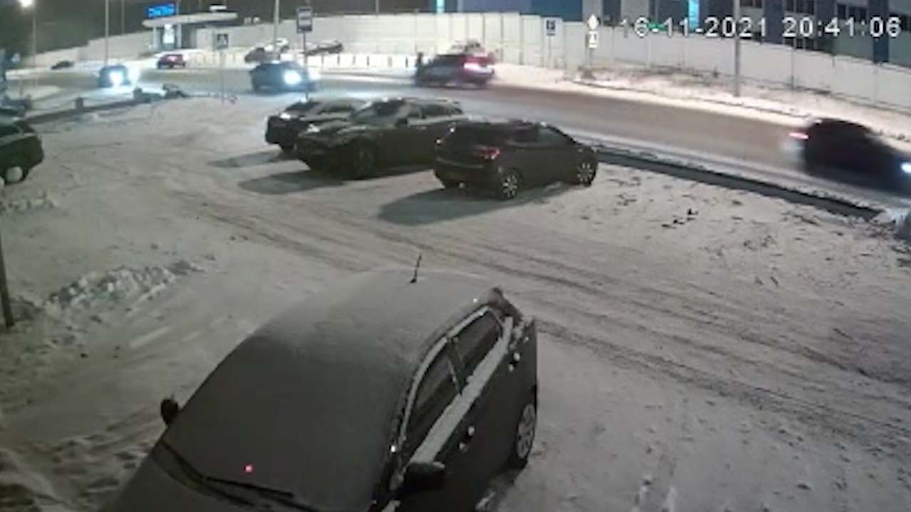 Появилось видео, как в Казани иномарка сбила двоих человек, которые переходили дорогу на пешеходном переходе.