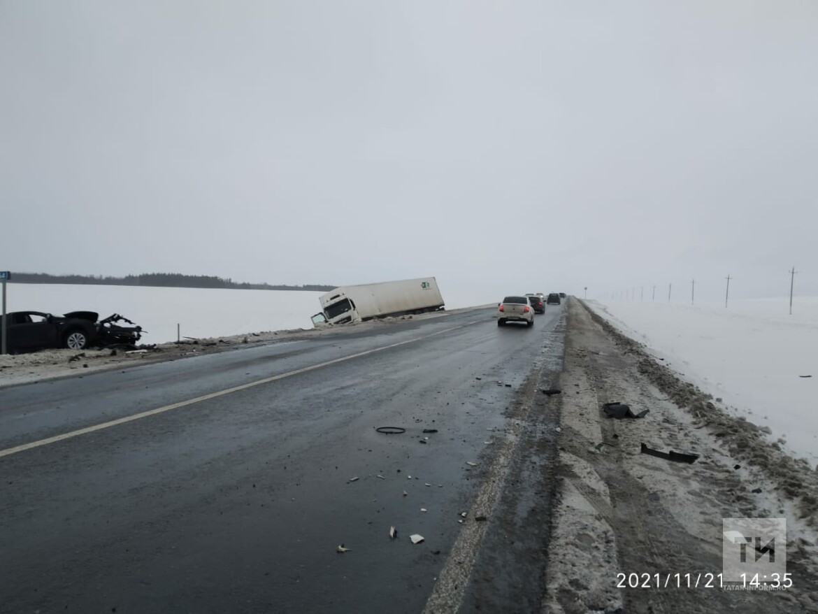 Смертельная авария произошла на трассе в Заинском районе республики около села Тонгузино накануне днем. Легковушка и фура столкнулись лоб в лоб, после чего оба автомобиля вылетели с трассы в кювет. От сильного удара легковой автомобиль буквально превратился в груду металла, у большегруза же оказалась повреждена кабина.