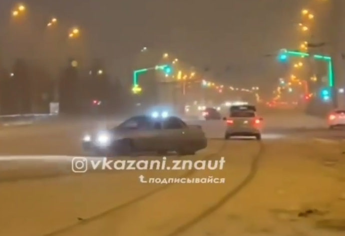 В центре Казани водитель устроил дрифт посреди дороги. Видео опубликовали очевидцы в социальных сетях.