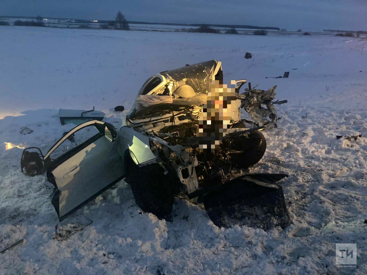 Смертельное столкновение произошло сегодня днем на трассе Казань — Оренбург в Чистопольском районе. Там фура с номерами Подмосковья лоб в лоб столкнулась с «Ладой». Удар был такой силы, что отечественную легковушку выкинуло с трассы. Автомобиль буквально разнесло — искорежены двери, капот и смята крыша.