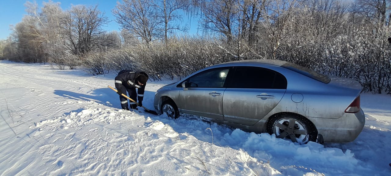 По прибытии на место вызова спасатели посадили их в аварийно-спасательный автомобиль и обогрели, а также помогли откопать и извлечь автомобиль из сугроба.
