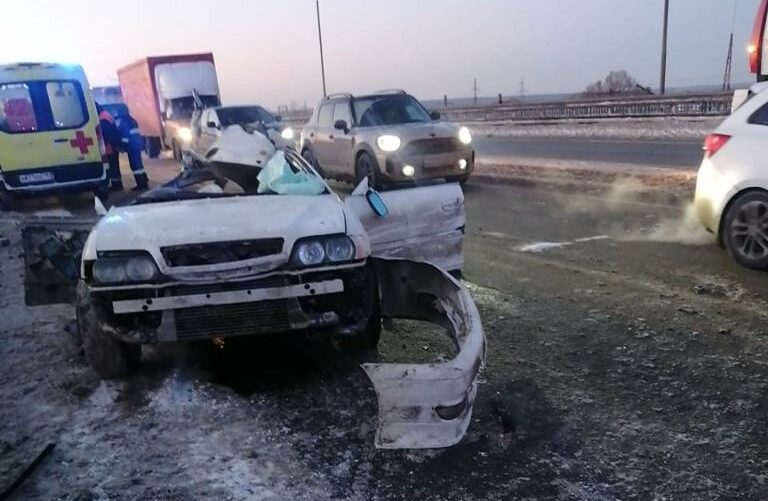 На мосту рядом с поселком столкнулись фура и легковушка с номерами республики Саха-Якутия.