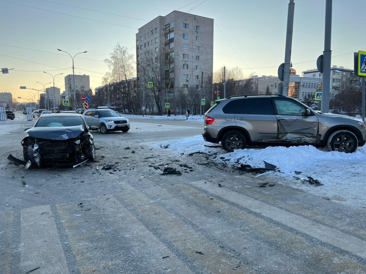 Авария произошла сегодня днём. За рулём немецкого внедорожника была 51-летняя женщина. По предварительным данным, женщина проехала на запрещающий сигнал светофора и врезалась в автомобиль KIA.