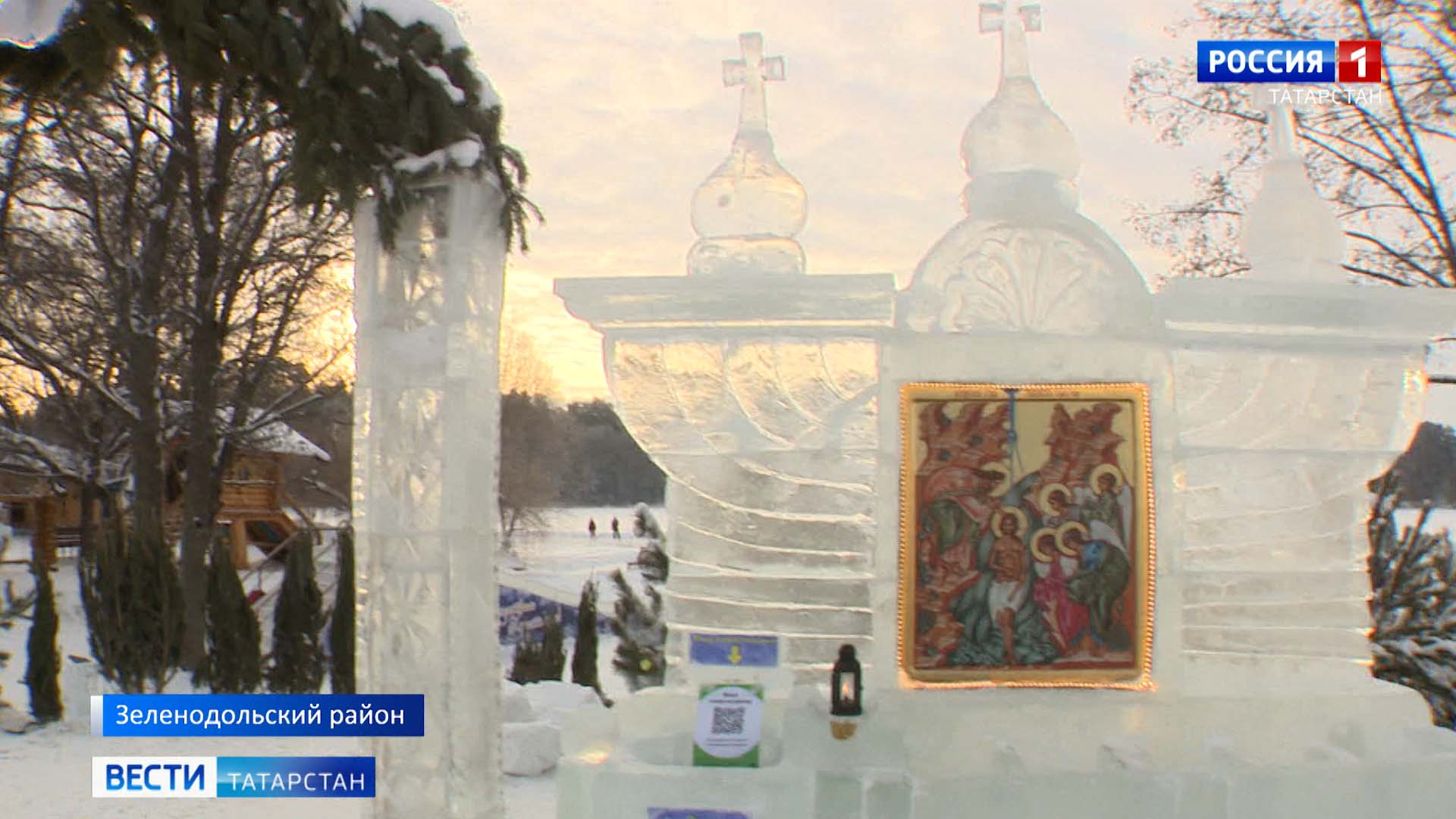 Не только снежные фигуры украсили Раифский монастырь. По традиции построили и ледяной городок. Все фигуры из кристально чистого льда прямо из озера.