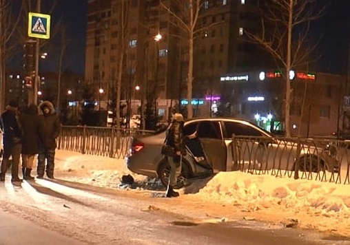 В Казани водитель Mercedes сбил девушку на пешеходной переходе и снес забор. Об этом сообщает «Татарстан 24».
