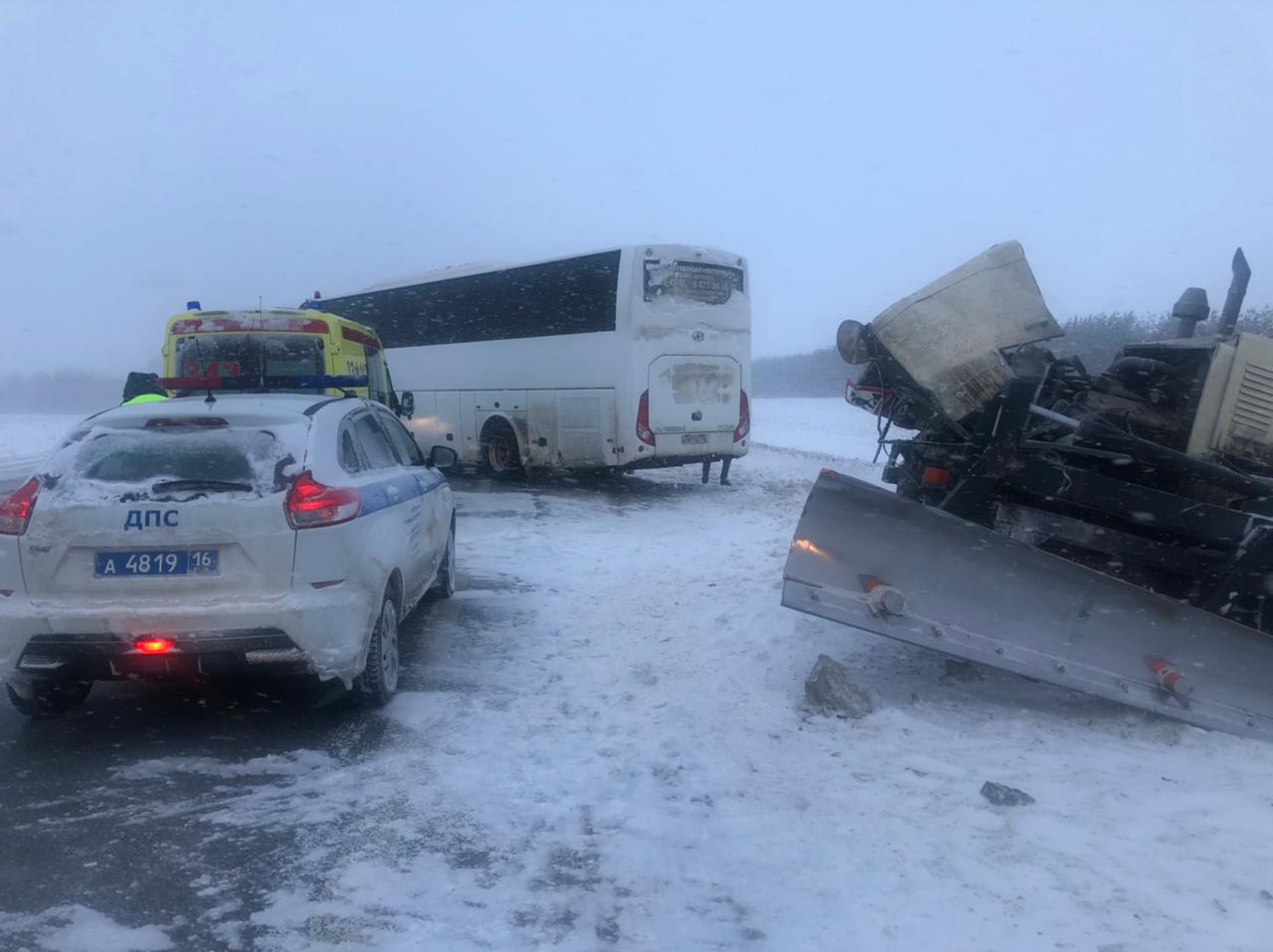 Прокуратура начала проверку после столкновения междугороднего автобуса со снегоуборочной машиной на трассе в Татарстане. Об этом сообщили в пресс-службе республиканского надзорного ведомства.