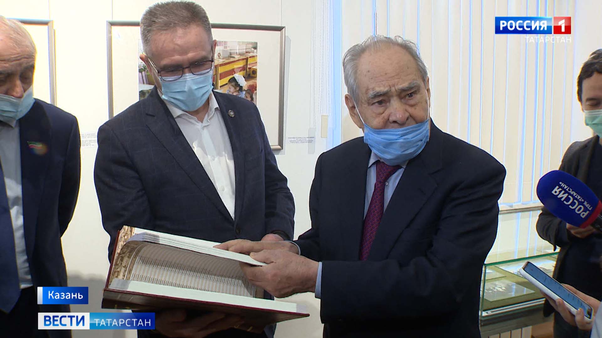 Вот и сейчас экскурсия идёт немного не по сценарию. Шаймиев заметил фотографию «Слёзы счастья», на которой бабушка благодарит его за переселение из трущоб в конце 90-хх. Завтрашний юбиляр просит принести книгу – в ней 49 тысяч семей, что тогда внесли в программу ветхого жилья.
