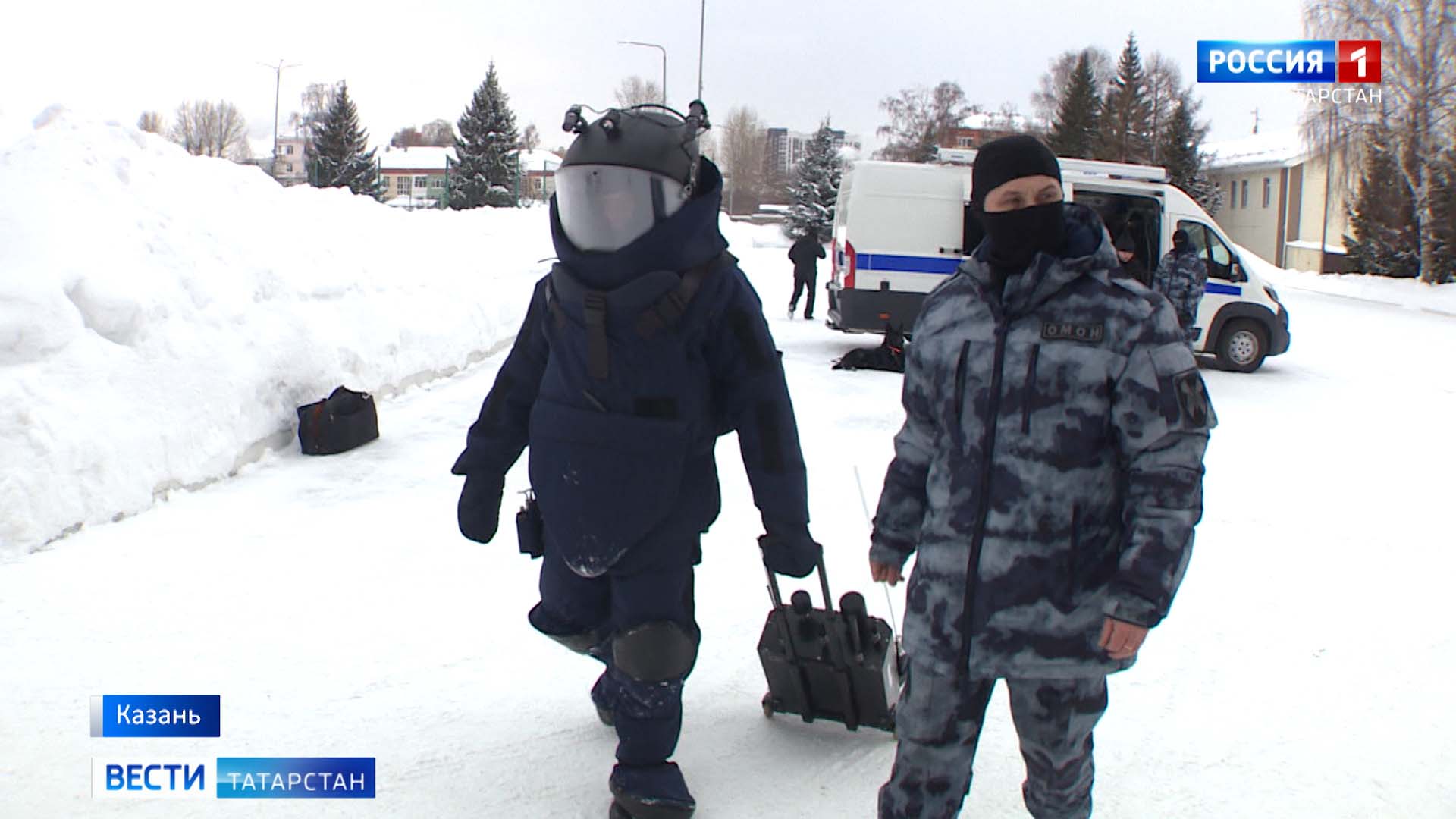 Через пять минут на место, на спецмашине «Аракс» выезжают сотрудники инженерно-технического отделения ОМОНа управления Росгвардии — взрывотехник, кинолог с собакой и сапер, последний идет к бомбе первым, надев на себя костюм под названием «Купол».