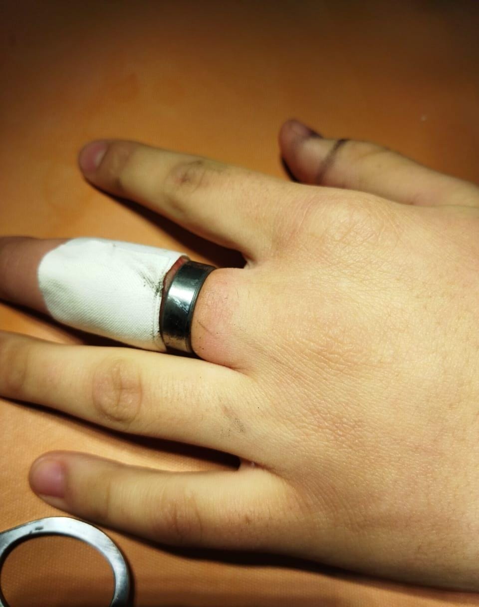 Тогда на месте вызвали спасателей, которые при помощи специнструментов срезали часть подшипника с пальца.
