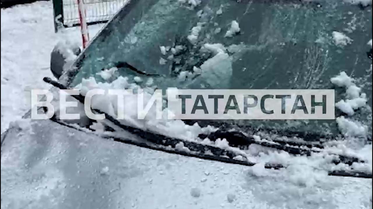 В Казани упавшая с крыши многоэтажки наледь разбила припаркованный автомобиль. Об этом «Вести Татарстан» сообщили жители дома.