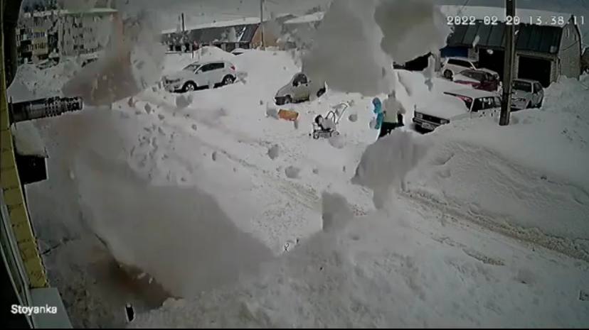 Под Казанью лавина снега едва не придавила женщину с детьми. Видео с камер наблюдения появилось в социальных сетях.