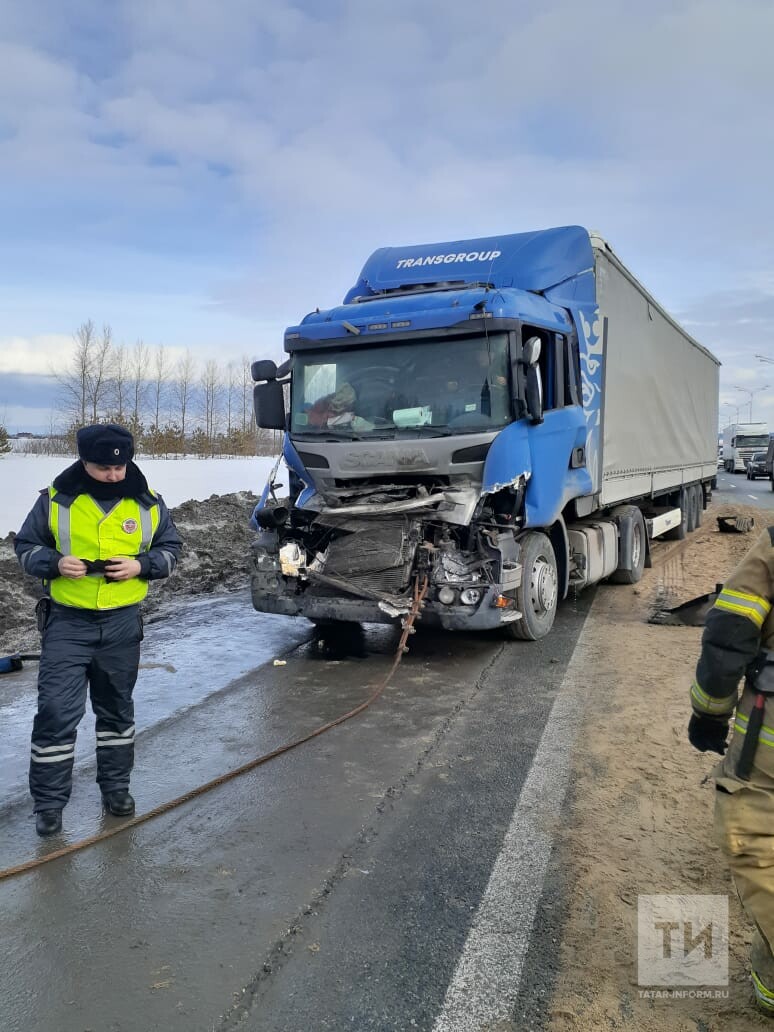 В аварии пострадал водитель большегруза. Его с травмами различной степени тяжести госпитализировали в больницу.