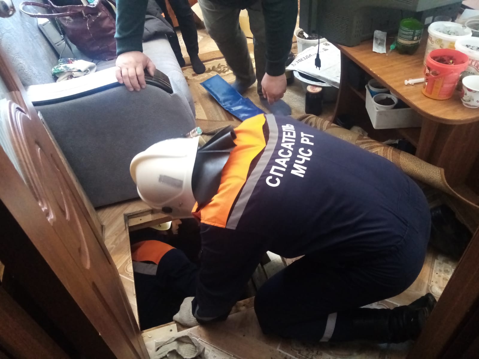 Прибывшие на помощь спасатели проникли в погреб через узкий лаз и оказали женщине первую помощь. Затем пострадавшую на жёстких носилках транспортировали из погреба и передали медикам скорой помощи.