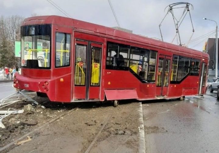 На улице Рихарда Зорге в Казани сегодня утром трамвай сошел с рельсов. Об этом сообщили в Комитете по транспорту города.