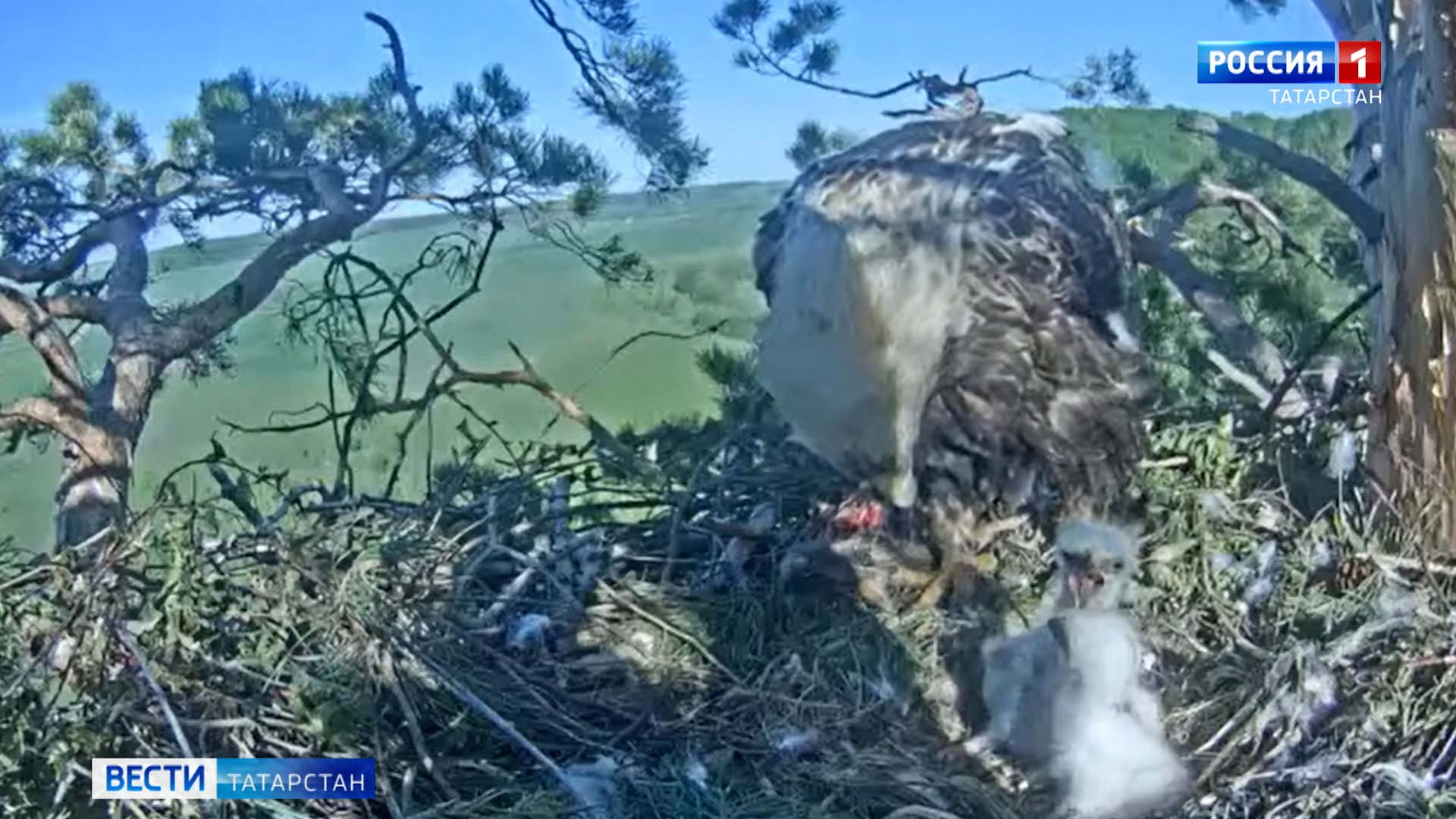 Оба малыша очень активные и чувствуют себя хорошо. В скором времени ожидается появление еще одного птенца — на кадрах трансляции видно, что в гнезде притаилось яйцо.