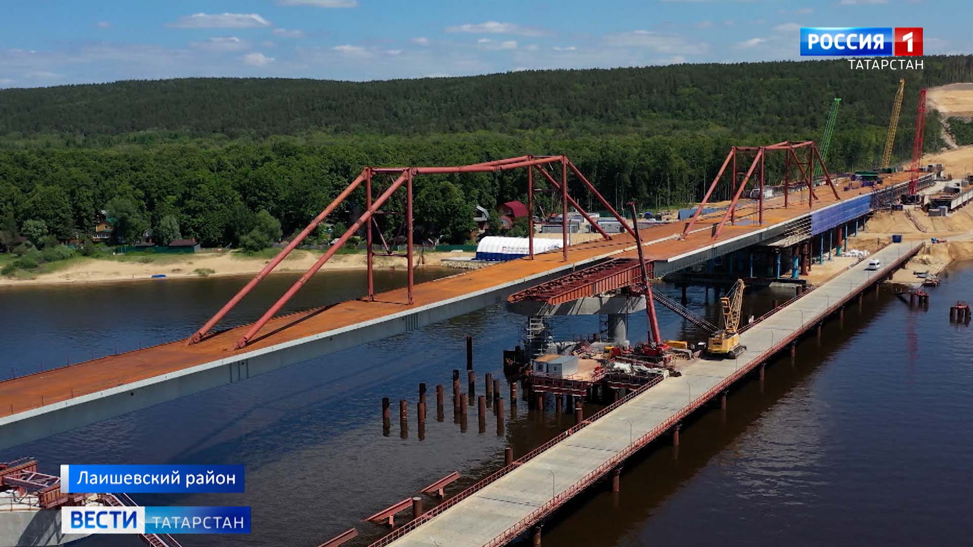 Ударными темпами. Продолжается строительство татарстанского участка трассы м-12. Строящийся мост через волгу все больше принимает очертания готового объекта. На каком этапе работы, есть ли сроки когда новый мост соединит два берега Волги расскажет Айнур Валиахметов.