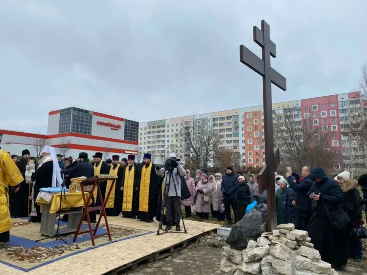Освещать крест на месте будущего храма Святого Спиридона приехал митрополита Казанского и Татарстанского Кирилла. Он совершил чин освящения закладного камня в основание храма на пустыре перед «Магнитом».