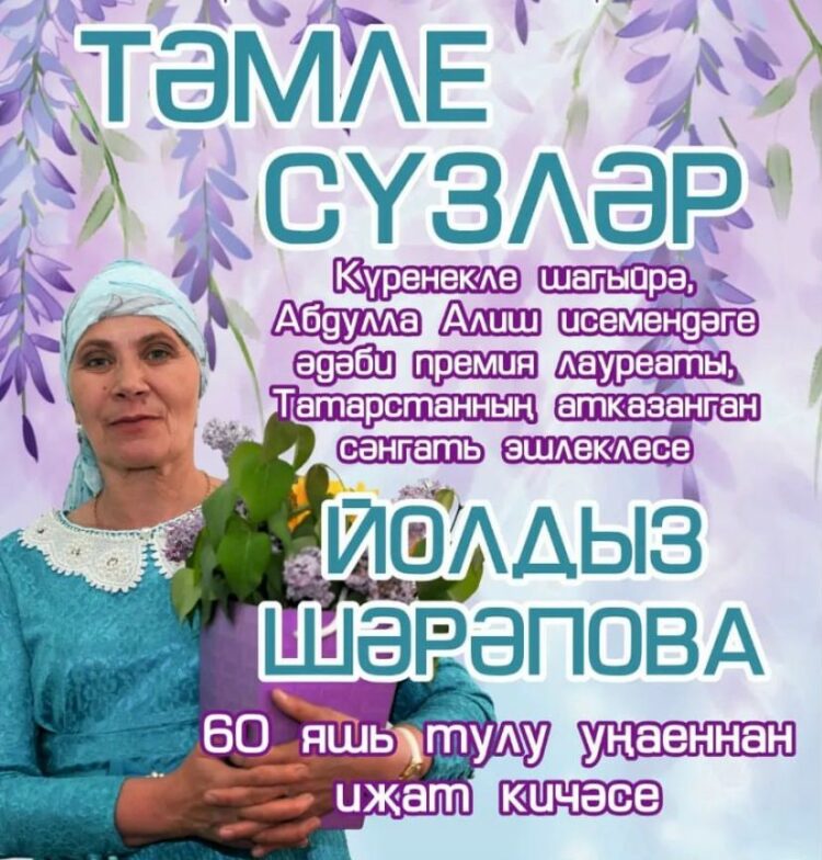 Танылган балалар шагыйрәсе, А.Алиш исемендәге премия лауреаты,»Шәһри Казан» газетасы журналисты Йолдыз Әдип кызы Шәрәповага багышлана. Күптән түгел Татарстан Язучылар берлегенең Тукай клубында ул үзенең 60 яшьлек юбилеен билгеләп үтте. Әлеге күркәм чарада без дә булдыкм, хәзер сезнең игътибарга юбилей кичәсеннән репортаж тәкъдим итәбез.