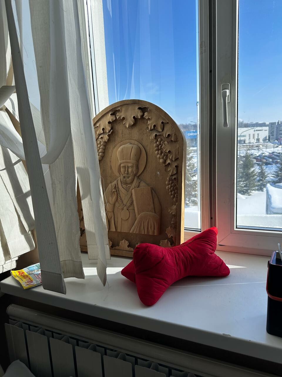 Следующие 30 дней он проведет дома с супругой, а затем снова отправится на фронт. Друзья привезли ему дерево для создания иконы по его просьбе. Воин уверен, что молитвы Николая Чудотворца помогают ему в трудных ситуациях.