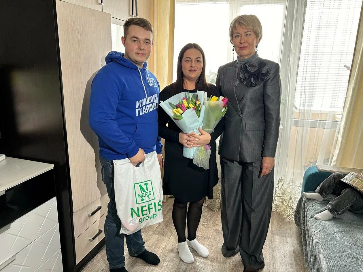 Совместно с Ольгой Вороновой, членом Государственного Совета Республики Татарстан VI созыва, молодые гвардейцы посетили супругу призванного.