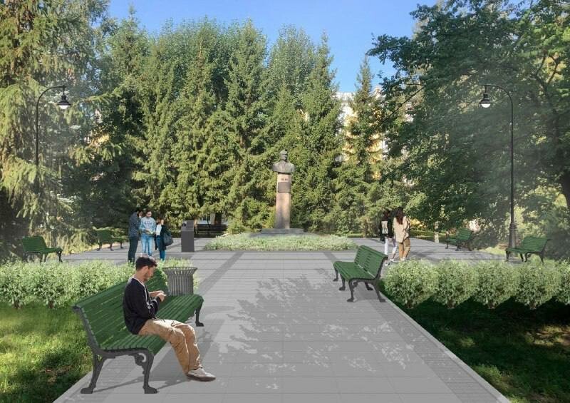 В рамках работ по благоустройству сквера планируется замена старых дорожек, укладка тротуарной плитки, озеленение 5,5 тысяч квадратных метров территории с посадкой цветочных клумб с лилиями, пионами, ирисами и медуницей. Также будет проведена посадка кустарников: сирени, чубушника, спиреи и рябинника. Кроме того, планируется прокладка инженерных коммуникаций для автополива, освещения и видеонаблюдения.